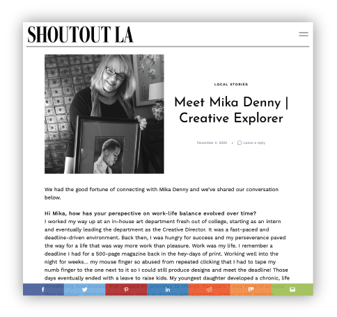 Click image at left to view article in ShoutOut LA : Meet Mika Denny : November 2020