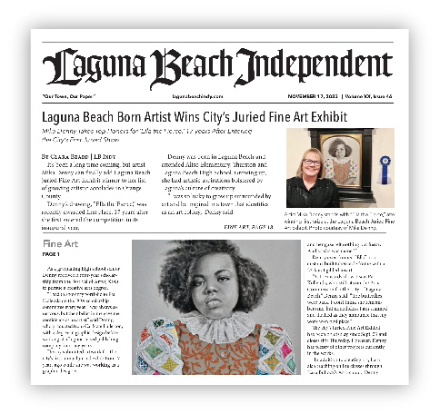 Feature article in local newspaper for Laguna Beach, California about winning first place in the city's annual juried fine art exhibition. Juried by artist Gerard Basil Stripling.